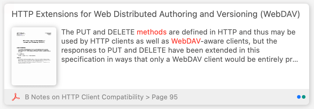 In the hybrid search results list, article cards marked with a blue dot indicate results found via keyword matching, while those marked with a green dot indicate results found via semantic search. An article card displaying both blue and green dots means it was found by both methods, indicating higher relevance.