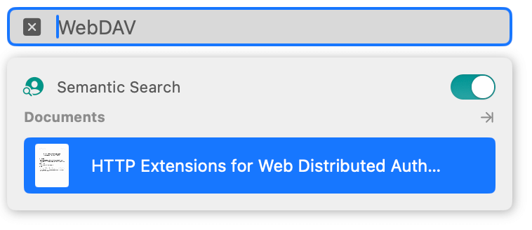 For example, if you search for "how to improve work efficiency", the default search might only return documents containing that exact phrase. In contrast, semantic search understands your intent and can return related content such as "time management techniques" or "setting task priorities", even if the phrase "improve work efficiency" is not explicitly mentioned in those documents.